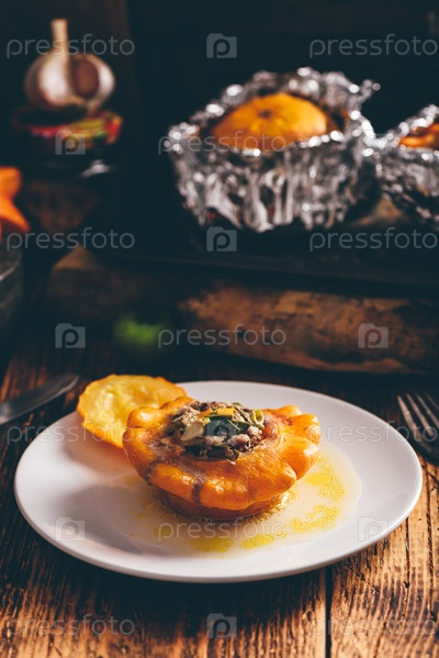 Патипан сквош, фаршированный мясным фаршем
