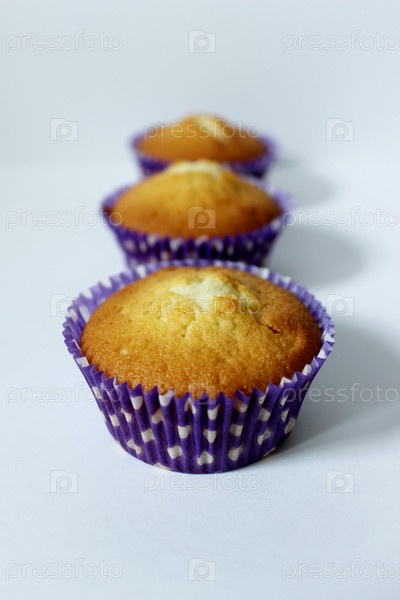 Вкусные золотистые кексы с фиолетовой оберткой, образующей диагональную линию