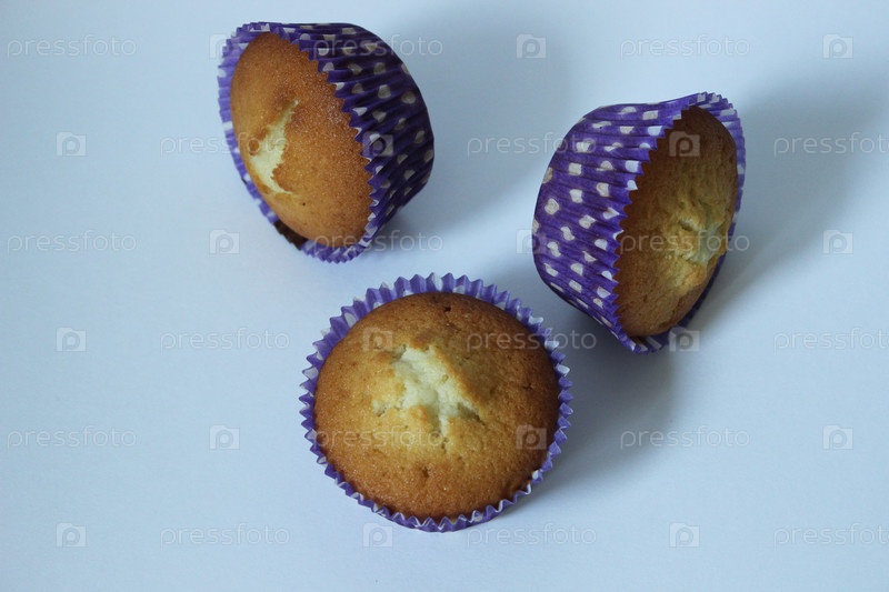 Три вкусных домашних кекса на белом фоне