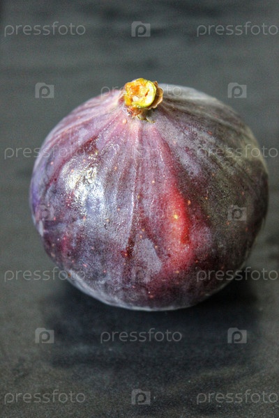 Спелый инжир с плодоножкой, видной на темно-серой поверхности