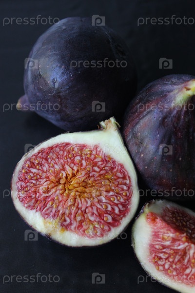 Свежий инжир с ярко-красной мякотью на темном фоне