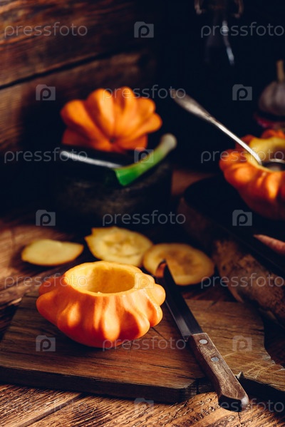 Желтые патиссоны, подготовленные для фаршировки