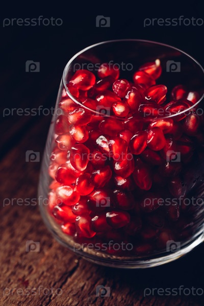 Стакан, полный красных гранатовых зерен