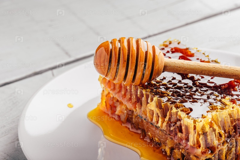Соты на тарелке с ложкой для меда