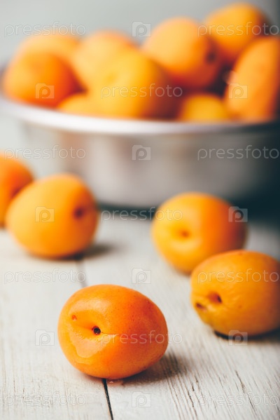Сочные абрикосы на светлой деревянной поверхности