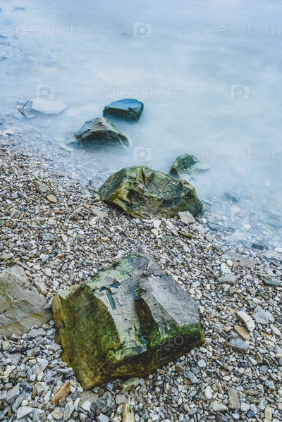 Ряд валунов в пене волн