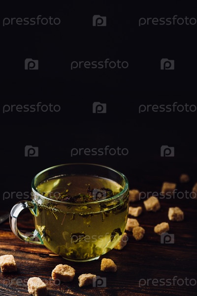 Чашка травяного чая с рафинированным сахаром