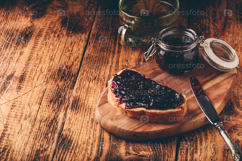 Тост с ягодным джемом и зеленым чаем