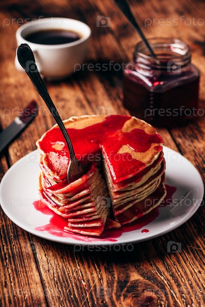 Стопка блинов с ягодным мармеладом