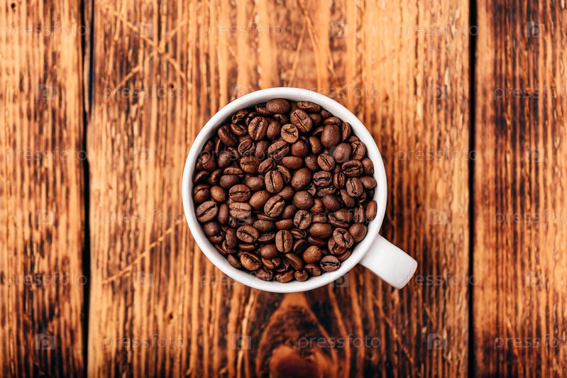 Жареные кофейные зерна в чашке
