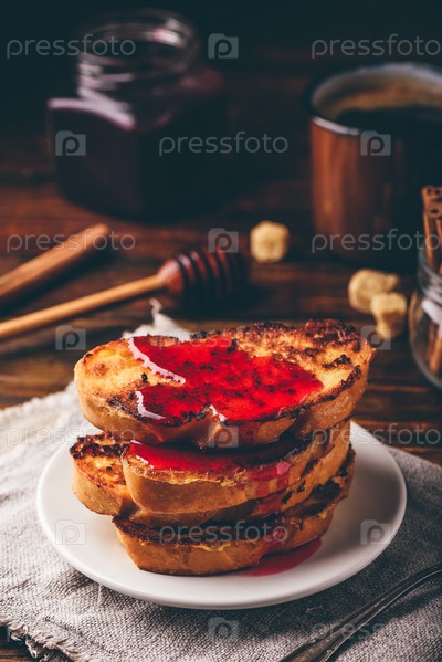 Стопка французских тостов с ягодным сиропом