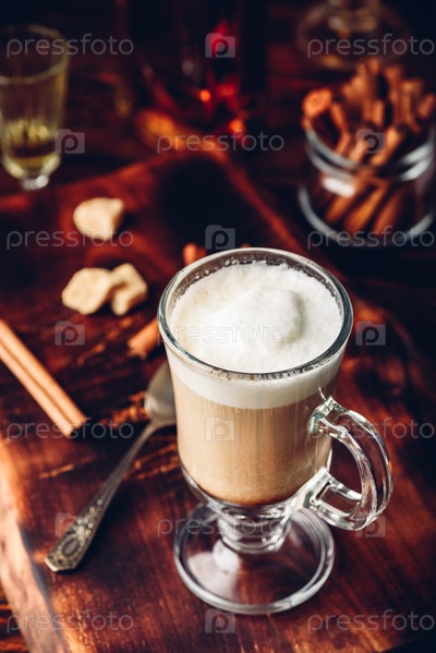 Кофе с ирландским виски и взбитыми сливками в стакане