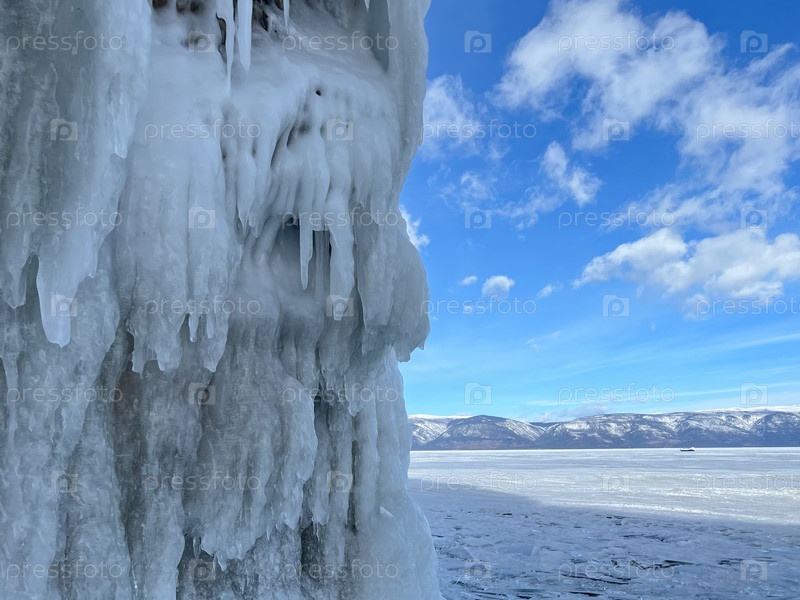 Большое ледяное образование на фоне голубого неба
