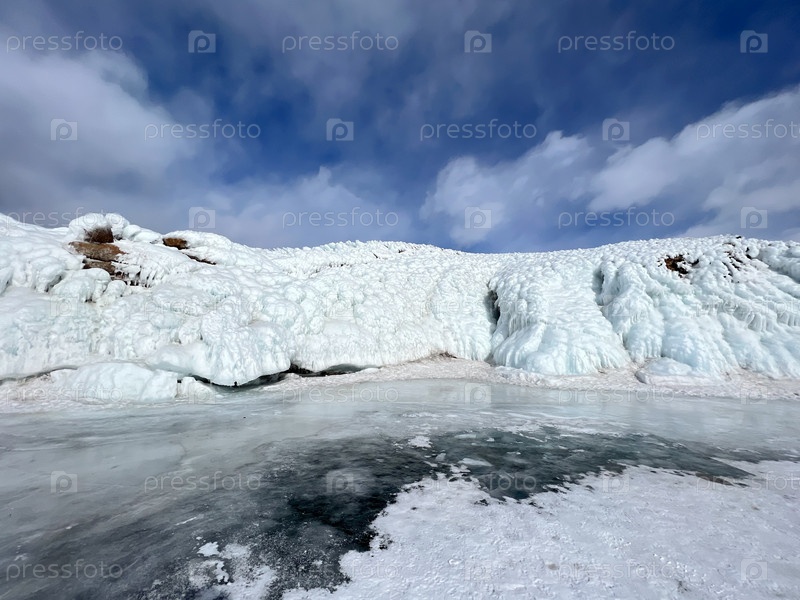 Большое ледяное образование на фоне голубого неба