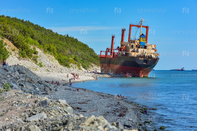 Краснодарский край / Россия - 7 августа 2022 г.: Застрявший сухогруз Rio