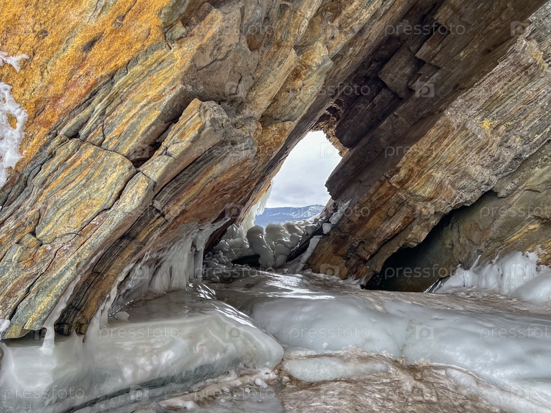 Большое ледяное образование на фоне голубого неба