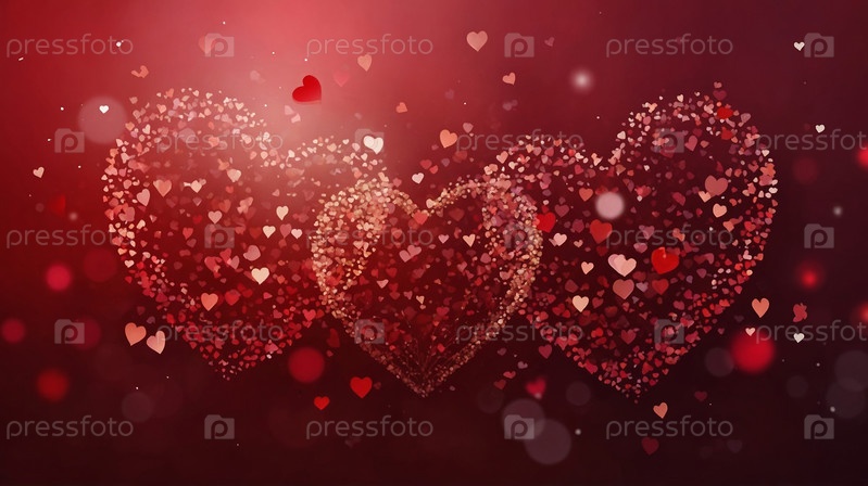 Романтичный узор из красных и белых сердец на размытом красном фоне, символизирующий любовь и страсть, идеально подходит для Дня святого Валентина