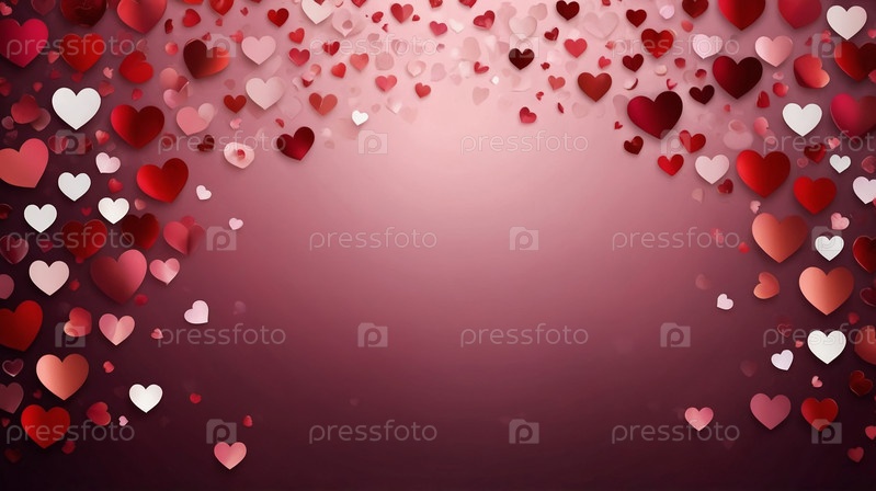 Романтичный узор из красных и белых сердец на размытом красном фоне, символизирующий любовь и страсть, идеально подходит для Дня святого Валентина