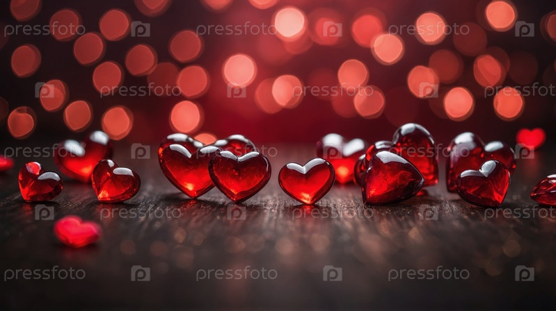 Романтичный узор из красных и белых сердец на размытом красном фоне, символизирующий любовь и страсть, идеально подходит для Дня святого Валентина