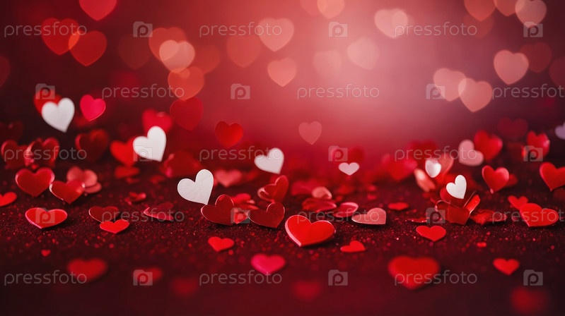 Романтичный узор из красных и белых сердец на размытом красном фоне, символизирующий любовь и страсть, идеально подходит для Дня святого Валентина