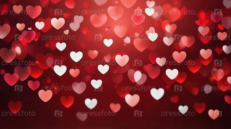 Романтичный узор из красных и белых сердец на размытом красном фоне, символизирующий любовь и страсть, идеально подходит для Дня святого Валентина