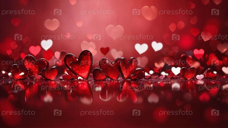 Романтичный узор из красных и белых сердец на размытом красном фоне, символизирующий любовь и страсть, идеально подходит для Дня святого Валентина