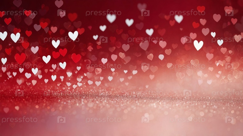 Романтичный узор из красных и белых сердец на размытом красном фоне, символизирующий любовь и страсть, идеально подходит для Дня святого Валентина