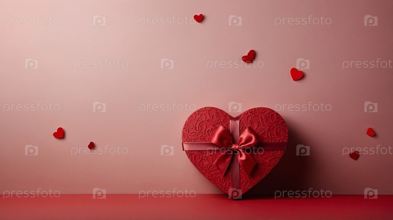 Букет из красных роз в форме сердца на темной поверхности, окруженный падающими лепестками в форме сердца, мягкий красный фон с эффектом боке, романтическая концепция, День святого Валентина