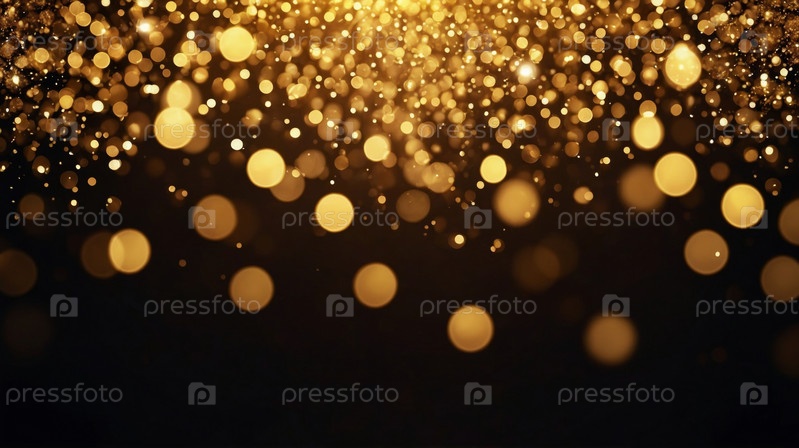 Мягкие золотистые шары освещают темный фон, усиливая праздничную атмосферу и вызывая ощущение торжества и радости
