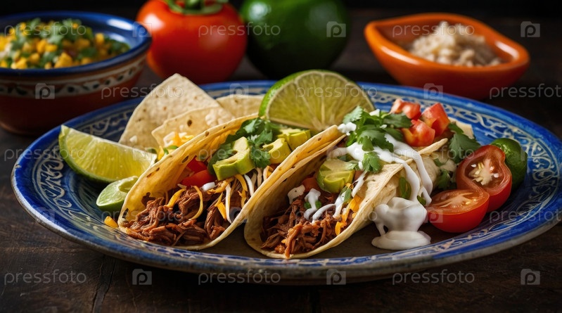 Ароматная тарелка с традиционными блюдами включает рис со специями, украшенный свежими овощами, подаваемый с цитрусовыми, авокадо и теплым напитком на деревянном столе