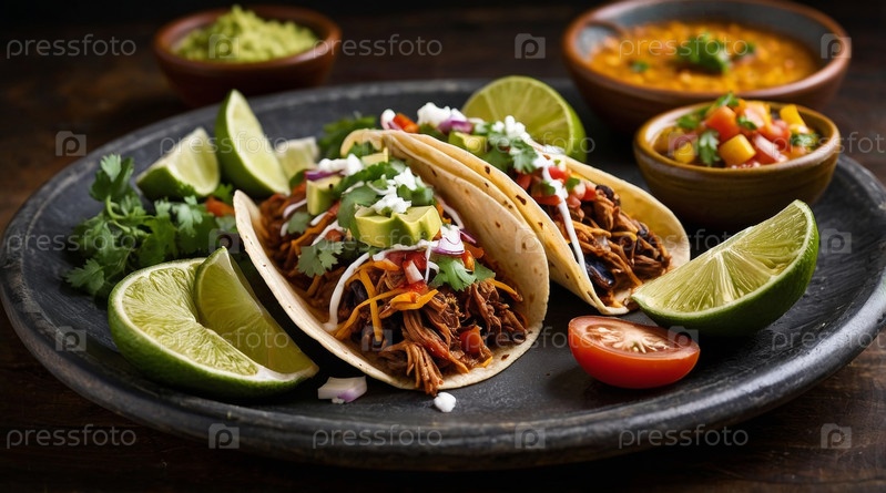 Ароматная тарелка с традиционными блюдами, включающая рис со специями, украшенный свежими овощами, подается с цитрусовыми, авокадо и теплым напитком на деревянном столе