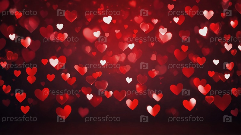 Романтичный узор из красных и белых сердец на размытом красном фоне, символизирующий любовь и страсть, идеально подходит для Дня святого Валентина