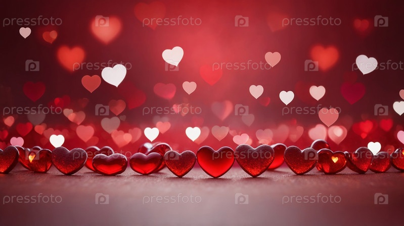 Романтичный узор из красных и белых сердец на размытом красном фоне, символизирующий любовь и страсть, идеально подходит для Дня святого Валентина