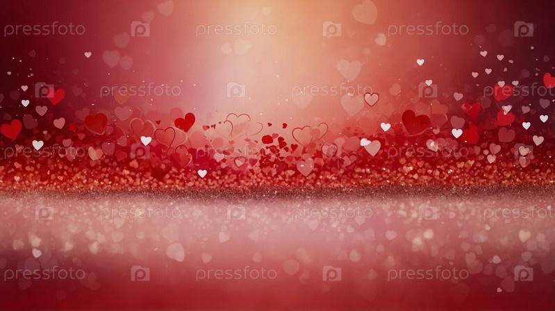 Романтичный узор из красных и белых сердец на размытом красном фоне, символизирующий любовь и страсть, идеально подходит для Дня святого Валентина