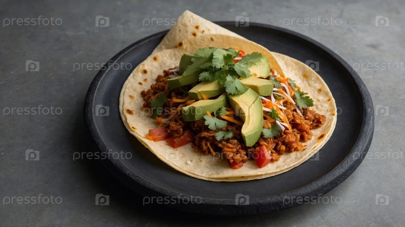 Ароматная тарелка с традиционными блюдами включает рис со специями, украшенный свежими овощами, подаваемый с цитрусовыми, авокадо и теплым напитком на деревянном столе