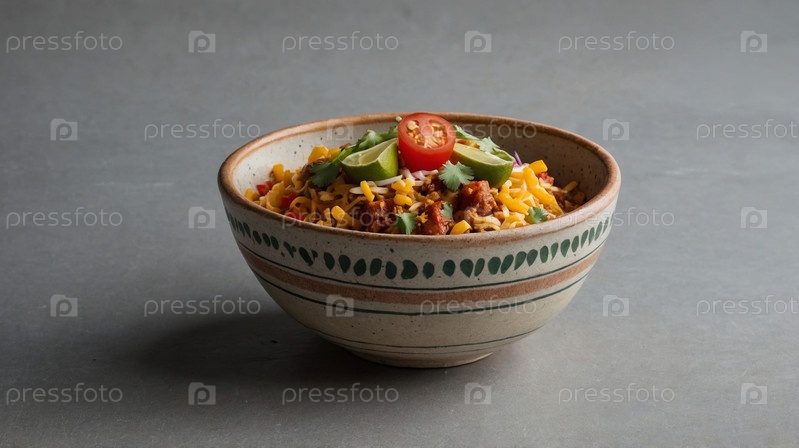 Яркая миска чили дополнена различными начинками, включая рубленые помидоры, зеленый лук и тертый сыр, что создает соблазнительную презентацию блюда