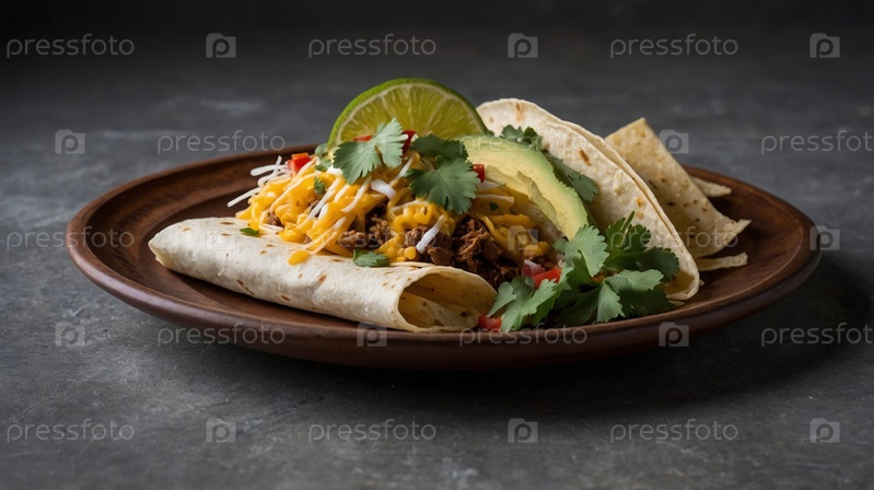 Ароматная тарелка с традиционными блюдами включает рис со специями, украшенный свежими овощами, подаваемый с цитрусовыми, авокадо и теплым напитком на деревянном столе