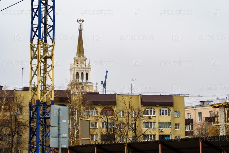 Городской пейзаж. Дом с башней 1957 г. Вид с ул. Фридриха Энгельса. Воронеж