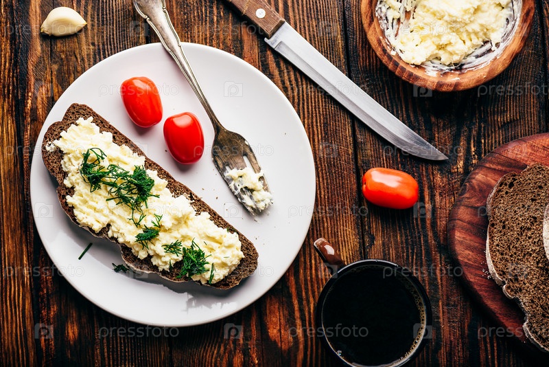 Тост из ржаного хлеба с плавленым сыром и чесноком