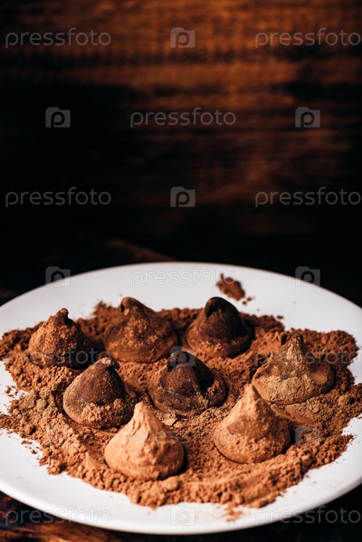 Домашние шоколадные трюфели, покрытые какао-порошком