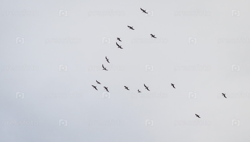 Снимок стаи чаек в небе. Природа