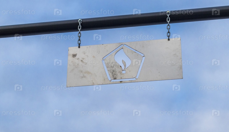 Металлическая пластина с выгравированным на ней знаком огня или газа. Концепция