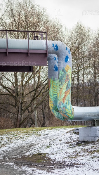 Красочные граффити на больших промышленных трубах. На открытом воздухе