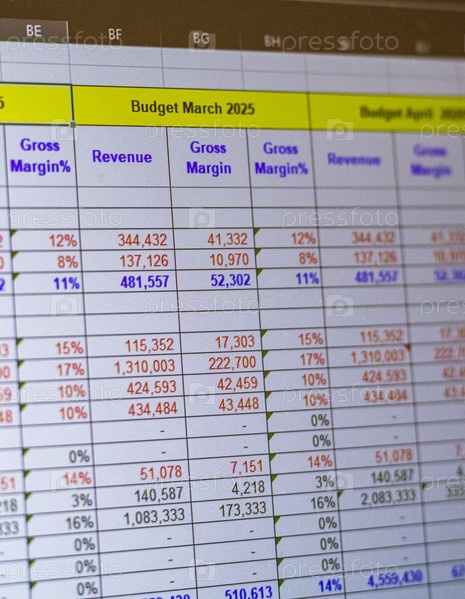 Снимок экрана компьютера, на котором показана таблица Excel с открытым бюджетом компании