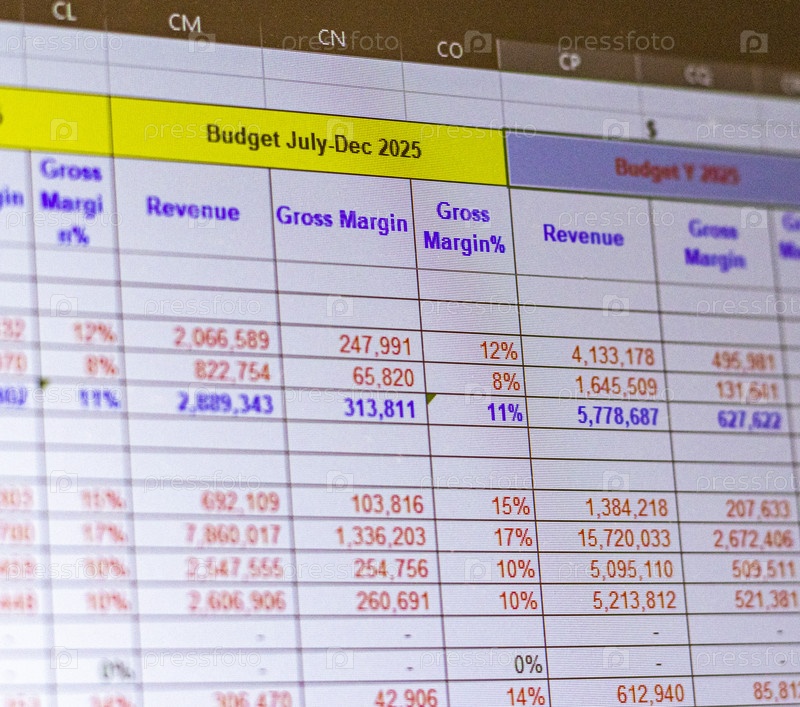 Снимок экрана компьютера, на котором показана таблица Excel с открытым бюджетом компании