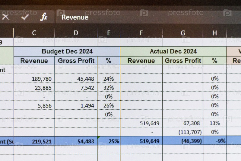 Снимок экрана компьютера, на котором показана таблица Excel с открытым бюджетом компании