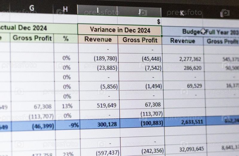 Снимок экрана компьютера, на котором показана таблица Excel с открытым бюджетом компании