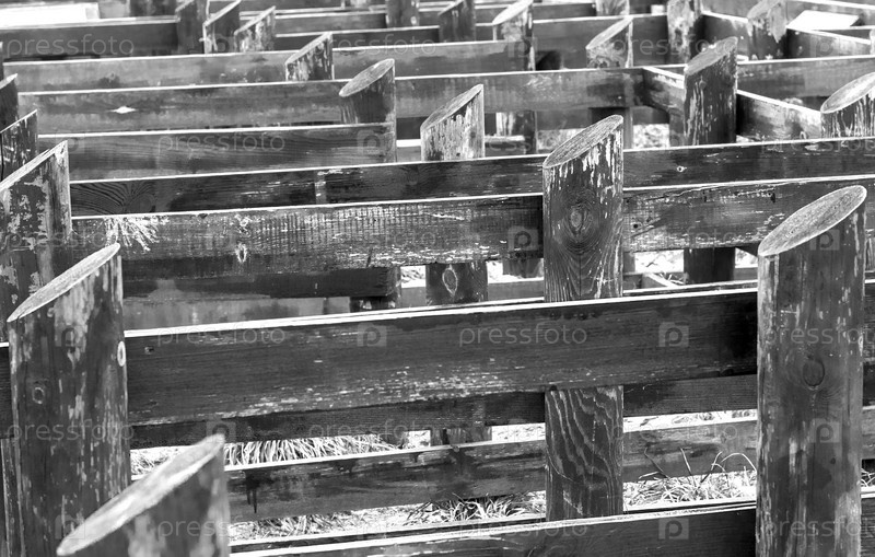 Концептуальный снимок деревянного ограждения. На открытом воздухе