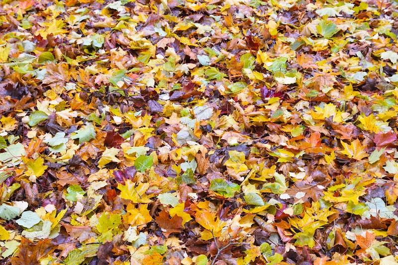 Яркий ковер из мокрых опавших листьев поздней осенью