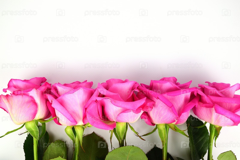 В нижней части изображения выстроены в ряд розовые бутоны роз